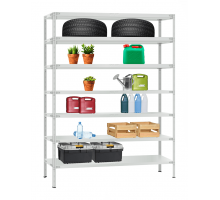 Размеры внешние. мм (ВхШхГ): 2400x 1000x 300 Количество полок: 7 полок (ярусов) Конструкция: Сборно-разборная Цвет: Светло-серый (RAL 7035) Тип покрытия: Порошково-полимерная краска